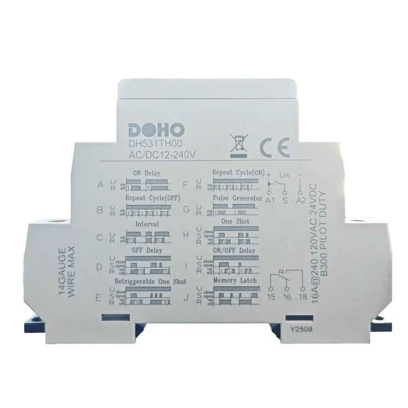 Многофункциональное реле времени DOHO DH531TH00 на DIN-рейку является ключевым устройством регулирования времени в управлении промышленной автоматикой, ориентированным на обеспечение точного времени срабатывания решений для всех видов электрических систем.Оно может работать с реле, модулями ПЛК и другим электрооборудованием, через заданный порог времени, в конце времени точно завершить замыкание или размыкание контактов, чтобы управлять оконечным оборудованием для достижения автоматизации упорядоченного переключения работы и остановки, и в конечном итоге достичь значительного повышения нормативной цели процесса управления.Вышеупомянутые модели обладают сильной способностью адаптироваться к окружающей среде: вход напряжения поддерживает два режима - одно напряжение (AC110V, AC220V и т.д.) и широкое напряжение (AC/DC12-240V и т.д.), что может гибко справляться с требованиями к электропитанию в различных промышленных сценариях; индикатор рабочего состояния имеет хорошо заметный дизайн, который может обеспечить интуитивную обратную связь о стадии работы оборудования и облегчить операторам быстрое определение статуса.В то же время унифицированный малый форм-фактор и стандартный монтаж на DIN-рейку позволяют легко встраивать их в плотные шкафы управления, экономя монтажное пространство и упрощая процесс подключения.