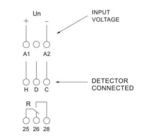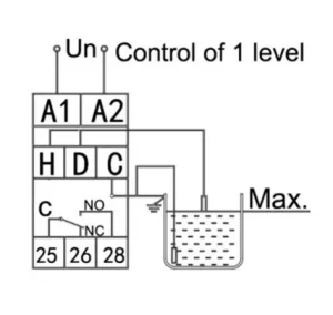 Когда уровень жидкости превышает H/D, начинается задержка; по окончании задержки реле включается. Когда уровень жидкости опускается ниже H/D, задержка заканчивается и реле отключается, повторяя этот цикл.