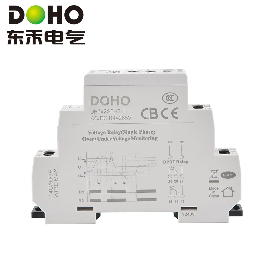 Однофазное реле защиты напряжения DOHO DH742S0H2 — это универсальное интеллектуальное устройство с широким диапазоном переменного/постоянного тока и регулируемым гистерезисом напряжения. В его основе лежит высокоскоростной процессор с низким энергопотреблением, совместимый с системами питания переменного/постоянного тока в диапазоне 100–265 В.