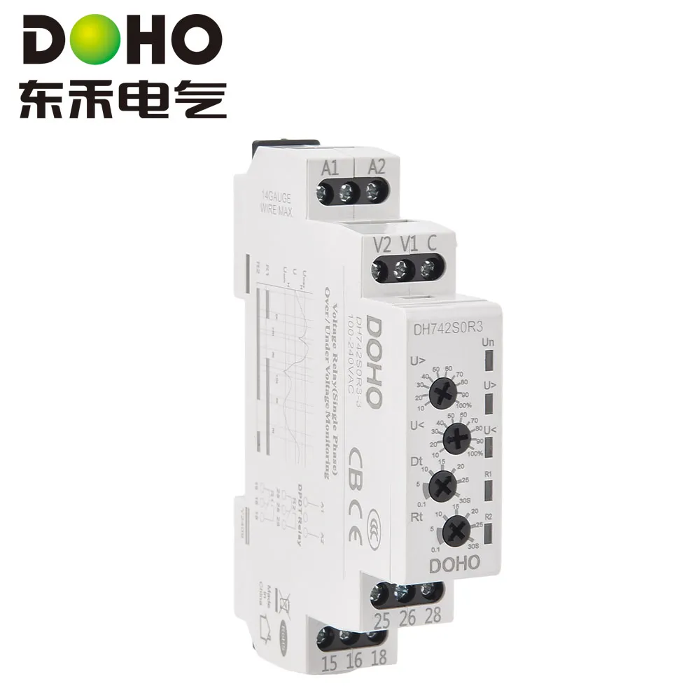 Однофазное реле защиты от перенапряжения DOHO DH742S0R3 — это интеллектуальное устройство с ультрашироким диапазоном защиты от перенапряжения. В его основе лежит высокоскоростной процессор с низким энергопотреблением, совместимый с системами питания 100–240 В переменного/постоянного тока.Защита от перенапряжения охватывает два диапазона пороговых значений: 30–300 В переменного/постоянного тока и 60–600 В переменного тока, что позволяет решать экстремальные ситуации, такие как высоковольтные импульсы и аномальные скачки напряжения. В сочетании с двухконтактными выходами DPDT оно обеспечивает независимую защиту двух цепей нагрузки.При нерегулярности напряжения реле может отключить цепи в течение ≤30 секунд с настраиваемой задержкой защиты. Встроенная конструкция с гистерезисом напряжения 5% предотвращает ложные срабатывания. Задержка восстановления регулируется до ≤30 секунд, с временем отклика 0,1 секунды и контактной способностью 3 А, подходящей для нагрузок малой и средней мощности. После восстановления напряжения он автоматически подключается после заданной задержки, удовлетворяя специальные требования к защите в сценариях промышленных высоковольтных импульсов и новом энергетическом испытательном оборудовании.