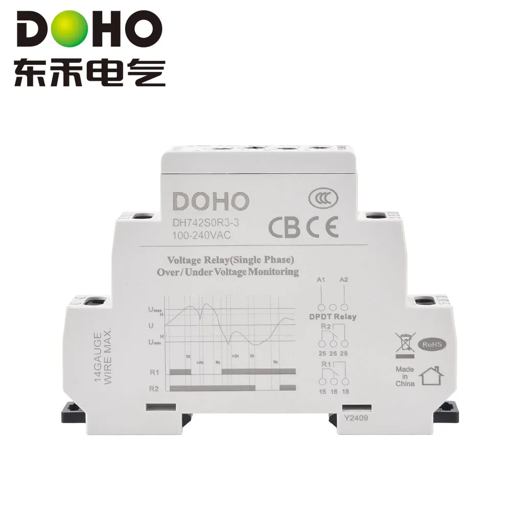 Однофазное реле защиты от перенапряжения DOHO DH742S0R3 — это интеллектуальное устройство с ультрашироким диапазоном защиты от перенапряжения. В его основе лежит высокоскоростной процессор с низким энергопотреблением, совместимый с системами питания 100–240 В переменного/постоянного тока.