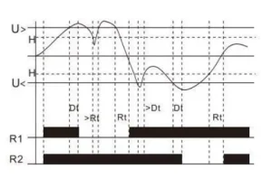 1.Совместимость с диапазоном 100–240 В переменного/постоянного тока, с двумя диапазонами пороговых значений перенапряжения: 30–300 В переменного/постоянного тока и 60–600 В переменного тока. Задержка срабатывания защиты (≤30 секунд) и задержка восстановления (≤30 секунд) настраиваются. Отключает цепи с двумя контактами при аномалиях напряжения; автоматически восстанавливает соединение после устранения неисправности по заданной задержке без ручного вмешательства, подходит для экстремальных сценариев напряжения.