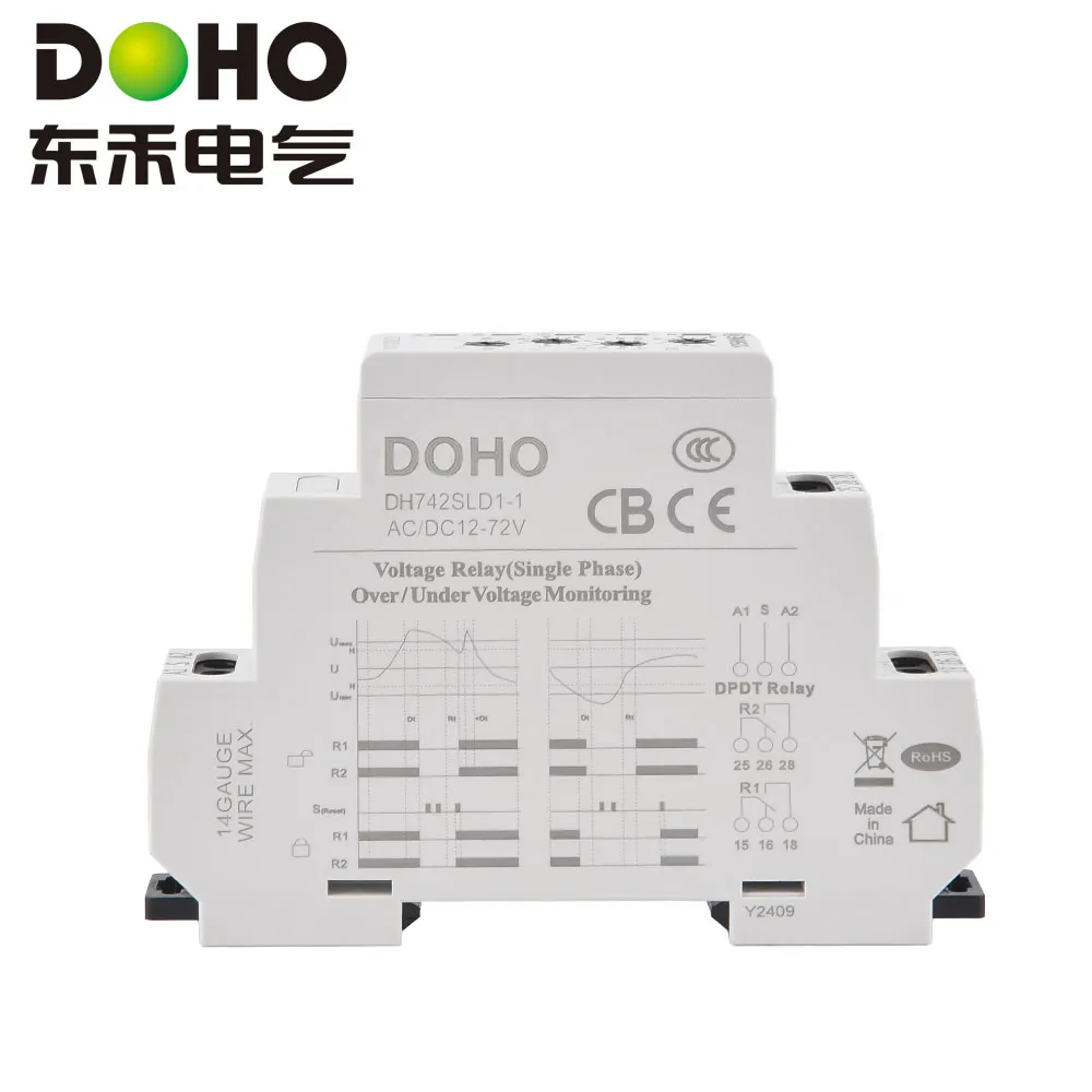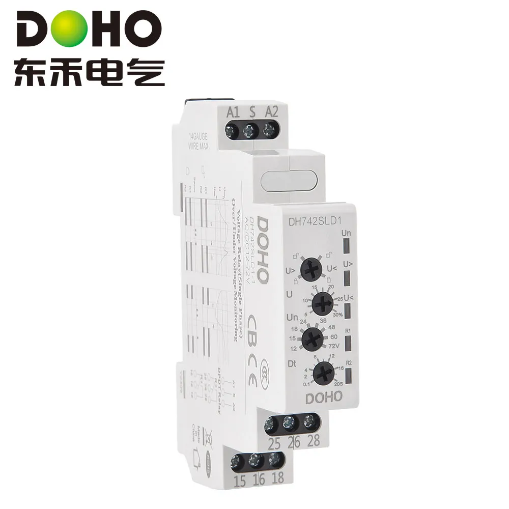 Однофазное реле защиты напряжения DOHO DH742SLD1 представляет собой двухконтактное защитное устройство, предназначенное для широкого спектра низковольтных применений. Оснащенное высокоскоростным процессором с низким энергопотреблением, оно подходит для низковольтных систем питания с напряжением 12–72 В переменного/постоянного тока.Благодаря двухконтактным выходам DPDT оно может одновременно управлять двумя нагрузками или облегчать переключение между основной и резервной цепями. Пороги перенапряжения и пониженного напряжения регулируются в пределах 5–20 %, что позволяет удовлетворить различные требования к защите низковольтного оборудования, такого как камеры безопасности, промышленные датчики и небольшие двигатели постоянного тока.При аномалиях напряжения реле может отключать цепи с настраиваемой задержкой ≤20 секунд. Встроенная конструкция с гистерезисом напряжения 5% предотвращает частые срабатывания из-за колебаний напряжения. С временем отклика всего 0,1 секунды и контактной способностью 3 А, подходящей для низковольтных нагрузок, он автоматически восстанавливает соединение при восстановлении напряжения. Это делает его идеальным для промышленных низковольтных систем управления и безопасности.