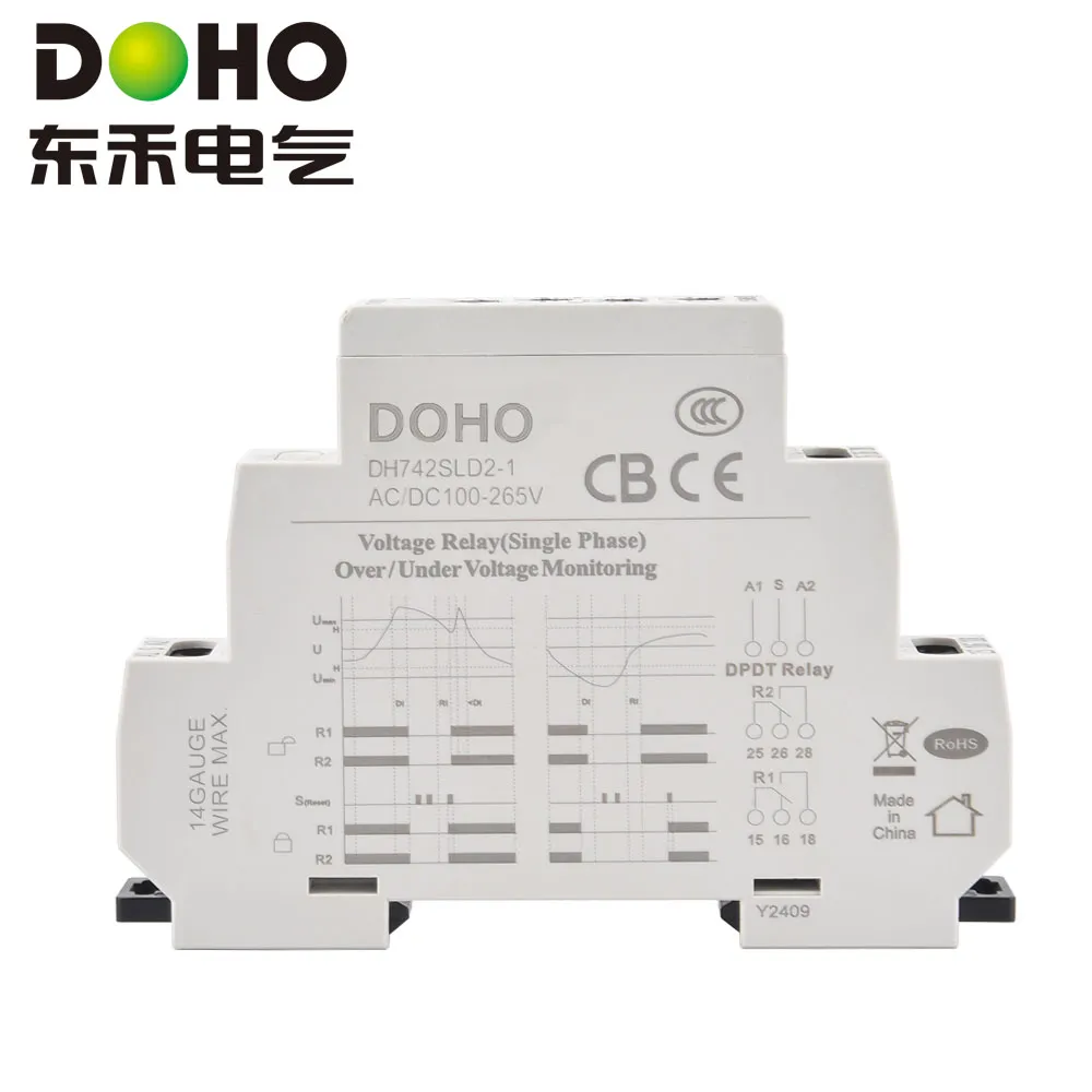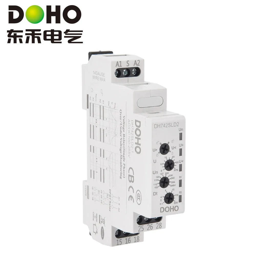 Однофазное реле защиты напряжения DOHO DH742SLD2 - это широкодиапазонное AC/DC устройство защиты общего назначения, в основе которого лежит высокоскоростной и маломощный процессор, и оно подходит для широкого спектра систем электропитания от 100-265VAC/DC.В нем используется двухконтактный выход DPDT, который может управлять двумя нагрузками одновременно, а пороги превышения и понижения напряжения регулируются в пределах 5-20%, что позволяет удовлетворить требования по защите от напряжения в смешанных сценариях AC/DC, таких как торговое оборудование и промышленные вспомогательные цепи.При обнаружении аномального напряжения реле может настроить задержку защиты, чтобы отключить цепь менее чем за 20 секунд, а встроенный 5% гистерезис напряжения предотвращает частые запуски и остановки; время срабатывания составляет всего 0,1 с, а мощность контактов 3 А удовлетворяет требованиям нагрузок малой и средней мощности, и реле автоматически включается после возвращения напряжения в норму. Это предпочтительное устройство защиты для сложных сценариев электроснабжения благодаря широкой адаптации к напряжению и преимуществу двухконтактности.
