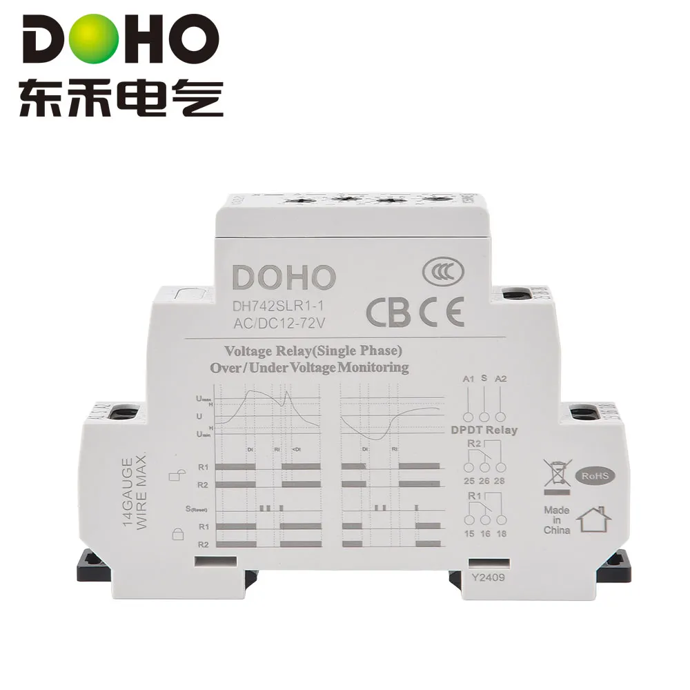 Однофазное реле защиты напряжения DOHO DH742SLR1 — это устройство защиты от пониженного напряжения с широким диапазоном регулировки порогового значения. В его основе лежит высокоскоростной процессор с низким энергопотреблением, что делает его подходящим для систем питания с пониженным напряжением 12–72 В переменного/постоянного тока.