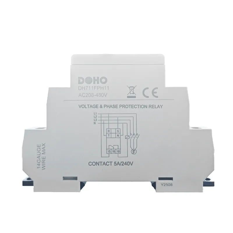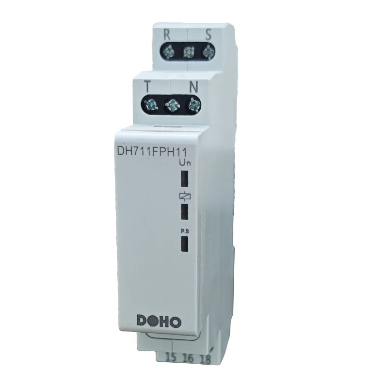 Трехфазное четырехпроводное реле защиты от потери фазы, ошибки последовательности и дисбаланса напряжения DOHO DH711FPH11 специально разработано для трехфазных четырехпроводных систем электропитания. Основанное на высокоскоростном процессоре с низким энергопотреблением, оно обеспечивает комплексный мониторинг и защиту от потери фазы, неправильной последовательности фаз и дисбаланса напряжения.Постоянно получая сигналы напряжения, реле точно определяет инверсию последовательности фаз и потерю фазы, одновременно контролируя дисбаланс трехфазного напряжения (порог: 12%).При обнаружении аномалий реле быстро прерывает цепь в течение 0,1 секунды, предотвращая повреждение оконечного оборудования с нейтральными линиями, такого как лифты и системы центрального кондиционирования воздуха, в результате ненормальных условий эксплуатации.После устранения неисправности оборудование автоматически возобновляет подачу питания без ручного вмешательства, что значительно повышает эффективность работы и безопасность оборудования в распределительной системе.