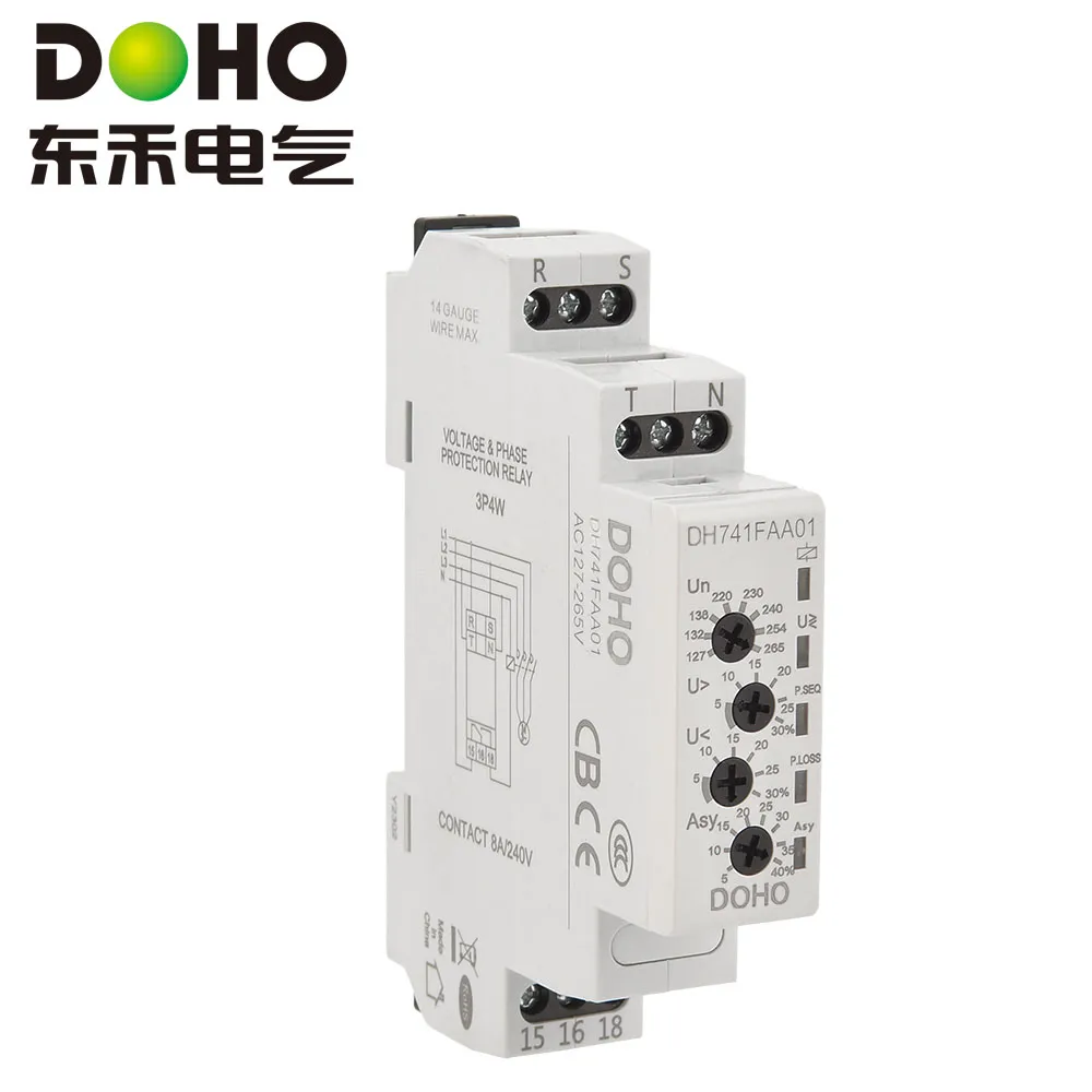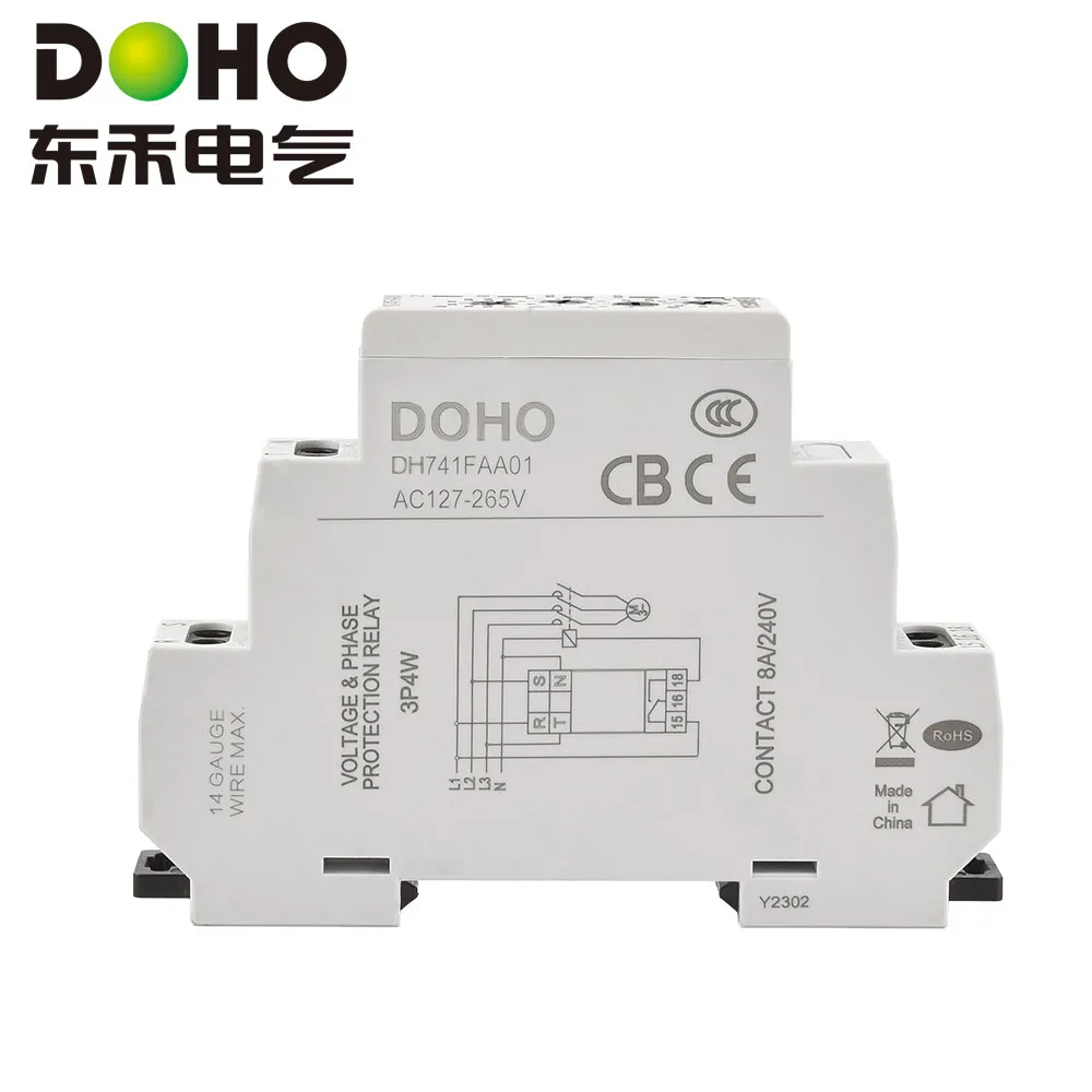 Трехфазное четырехпроводное реле защиты напряжения DOHO DH741FAA01 – это низковольтное интеллектуальное устройство с широким диапазоном контроля дисбаланса, в основе которого лежит высокоскоростной и маломощный процессор, и подходит для трехфазной четырехпроводной системы электроснабжения AC127-265V.