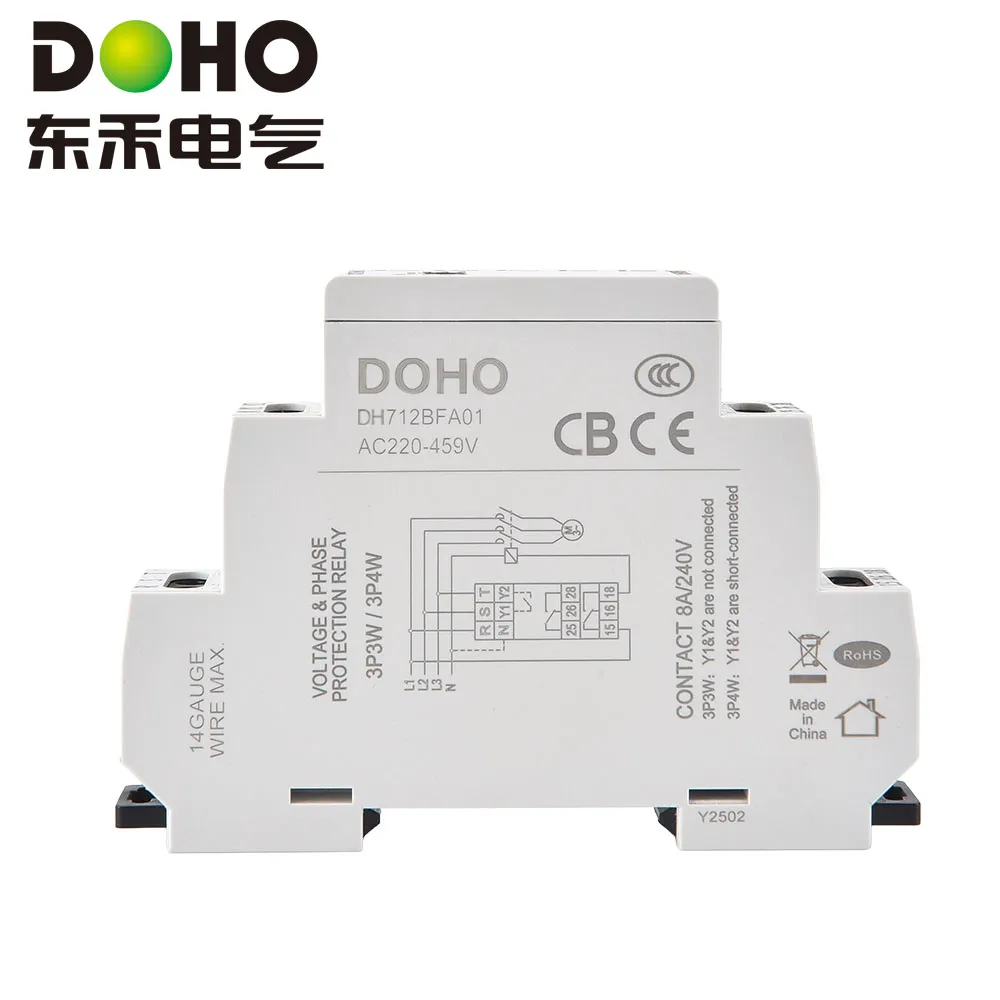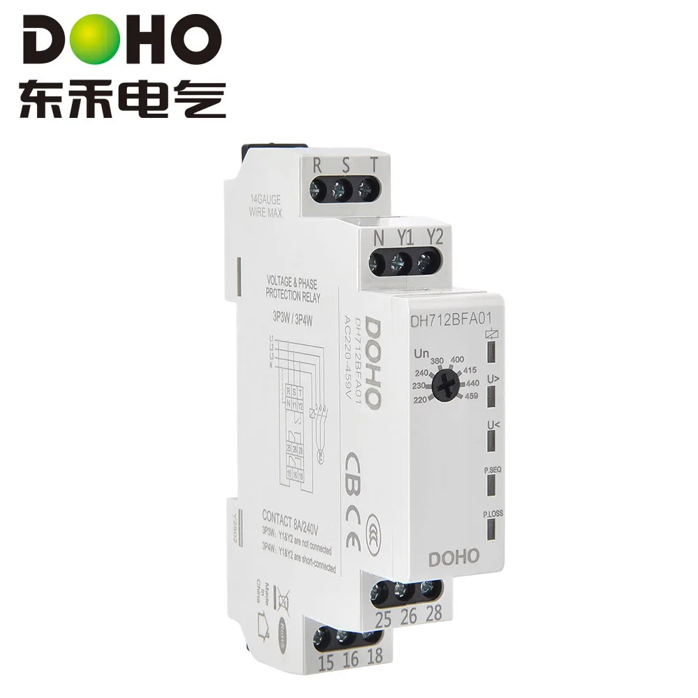 DOHO DH712BFA01 Трехфазное трехпроводниковое/четырехпроводниковое универсальное реле защиты напряжения — это интеллектуальное устройство защиты с широким диапазоном адаптации напряжения. Основанное на высокоскоростном процессоре с низким энергопотреблением, оно поддерживает переключение между трехфазным трехпроводниковым и четырехпроводниковым режимами и подходит для систем питания с широким диапазоном напряжения 220–459 В переменного тока.