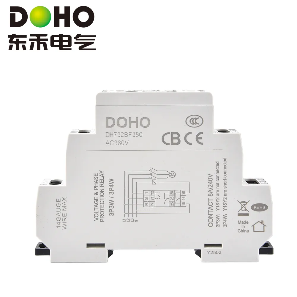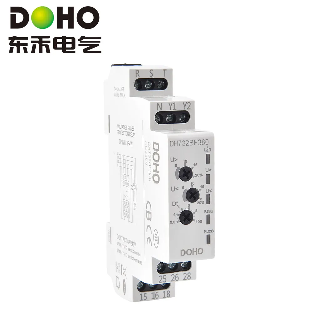 Трехфазное трехпроводниковое/четырехпроводниковое универсальное реле защиты напряжения DOHO DH732BF380 — это устройство защиты для различных сценариев с гибкой настройкой параметров. В его основе лежит высокоскоростной процессор с низким энергопотреблением, который обеспечивает плавное переключение между режимами мониторинга трехфазного трехпроводникового и четырехпроводникового подключения. Устройство поддерживает различные спецификации питания, включая 220/380/400/415/440 В переменного тока.Его отличительной особенностью является широкий диапазон регулировки порога перенапряжения (5–20 %), что позволяет настраивать стандарты защиты в соответствии с характеристиками напряжения различных устройств. Он также интегрирует функции мониторинга потери фазы, обратной фазы и дисбаланса напряжения 8 %.Устройство использует конструкцию с двойным контактным выходом DPDT с контактной способностью 8 А, что позволяет одновременно управлять двумя нагрузками или реализовывать переключение между основной и резервной цепями. Задержка защиты регулируется в диапазоне от 0,1 до 10 секунд в сочетании с конструкцией с задержкой напряжения 5 %, чтобы предотвратить частые срабатывания. Во время неисправностей устройство обеспечивает быстрое срабатывание за 0,1 секунды для отключения цепи и автоматическое повторное подключение после восстановления. Это позволяет адаптироваться к дифференцированным требованиям защиты в сложных сценариях электроснабжения, таких как промышленные производственные линии и коммерческие здания.